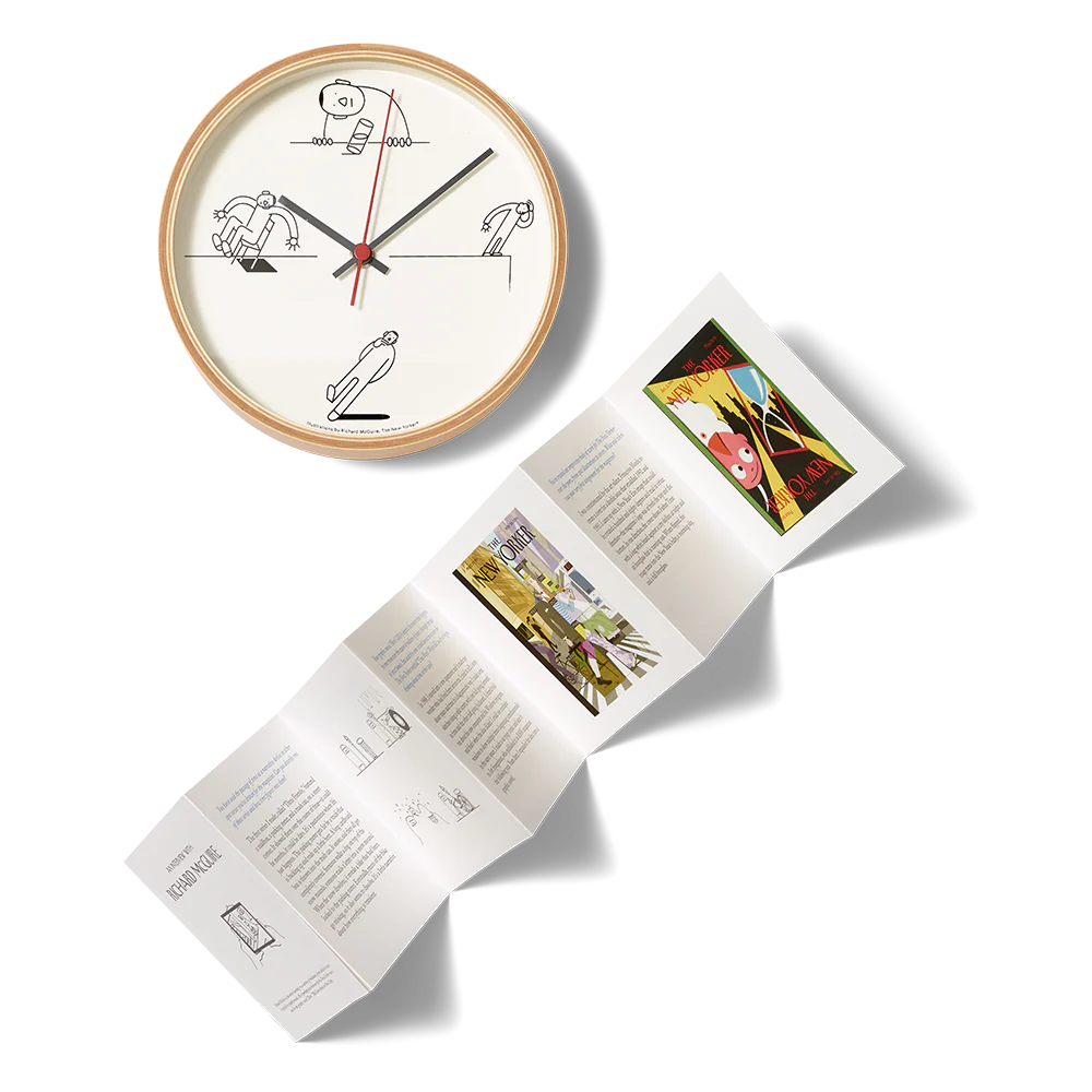 Nietzsche said that time is a flat circle, but it's more of an off-kilter cartoon in this playful wall clock. Featuring illustrations by the New Yorker cover artist and spot-art contributor Richard McGuire, the clock makes it fun to stay on schedule.